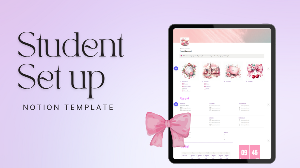Elevate your study experience with the Coquette Student Set Up, a minimalist Notion template designed to optimize your academic productivity. Organize your tasks, schedules, and resources efficiently for more effective learning. Download this template today and take your student performance to the next level!