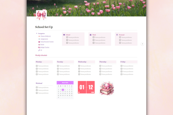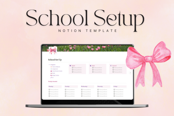 Transform your academic routine with our Minimal School Setup Notion Template, featuring the chic elegance of the Coquette style. Navigate this visually appealing and user-friendly template effortlessly to streamline your study routine and assignment tracking. The Coquette style adds a touch of charm to your educational experience, making learning delightful and organized. Download now to elevate your school setup and embrace a minimalist, stylish approach to academic success in Notion