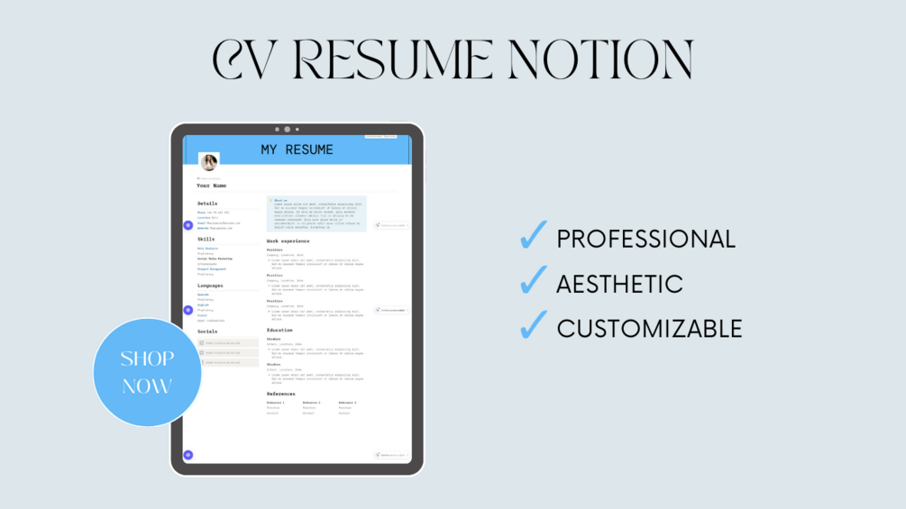 Create a sleek and organized CV/Resume with our minimalist Notion template. This template offers a clean and professional design to showcase your skills and experiences effectively.